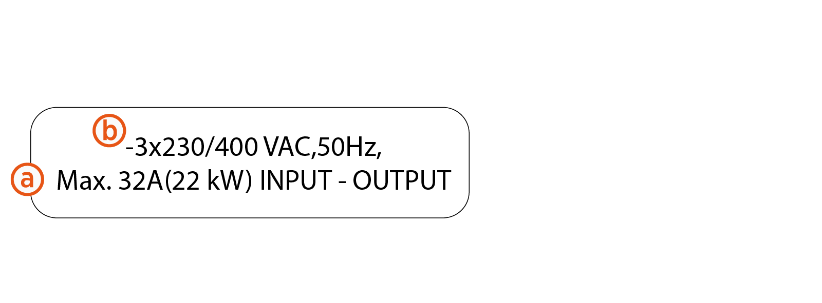 Maximum 22 kW (3 phase) or 7.4 kW (1 phase) per output. Power de-rating can apply. |