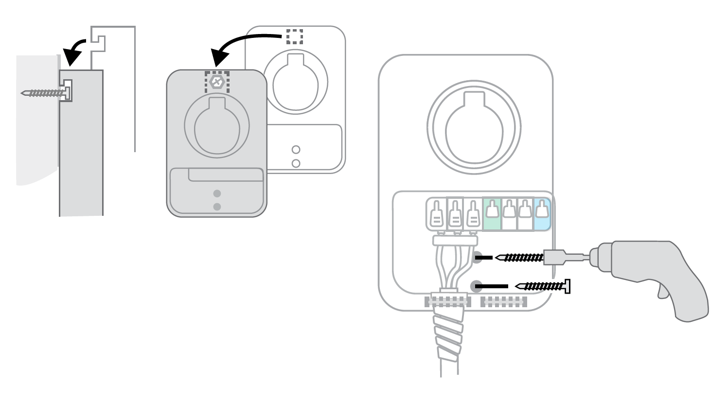 • Drive the remaining 2 screws into the bottom mounting holes to secure the station. Be careful not to damage the electrical wires.