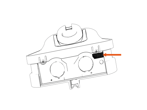 Push up on the charge cable strain relief and slide the cable clip into the slot. This secures the cable in place.