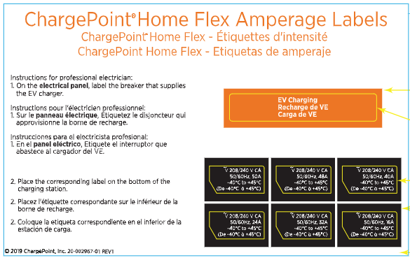 ChargePoint Home Flex Amperage Label Sheet (included in box)