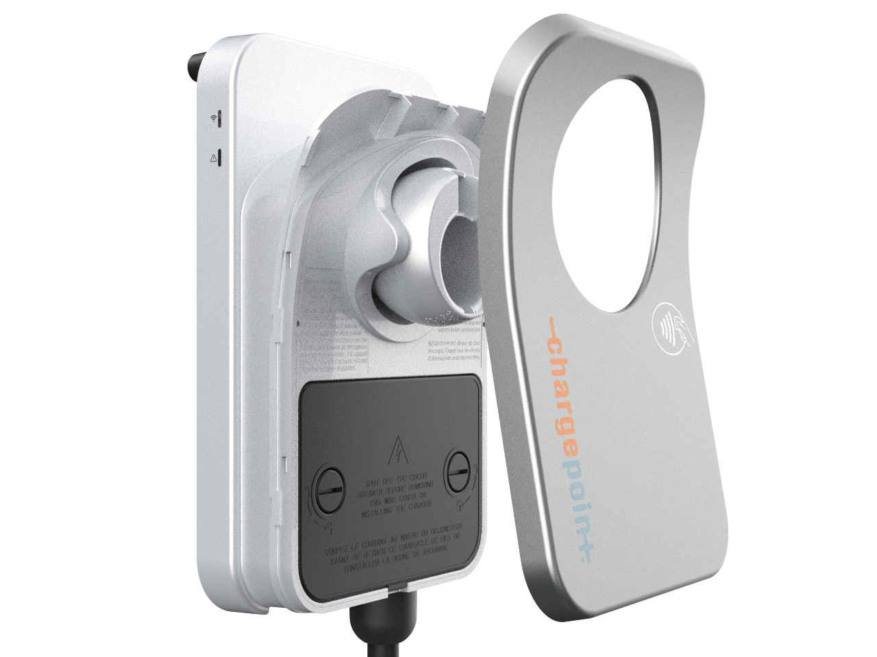 Lift the faceplate off by pulling down on the two tabs located on the bottom of the faceplate, then pulling the faceplate away from the charging unit.
