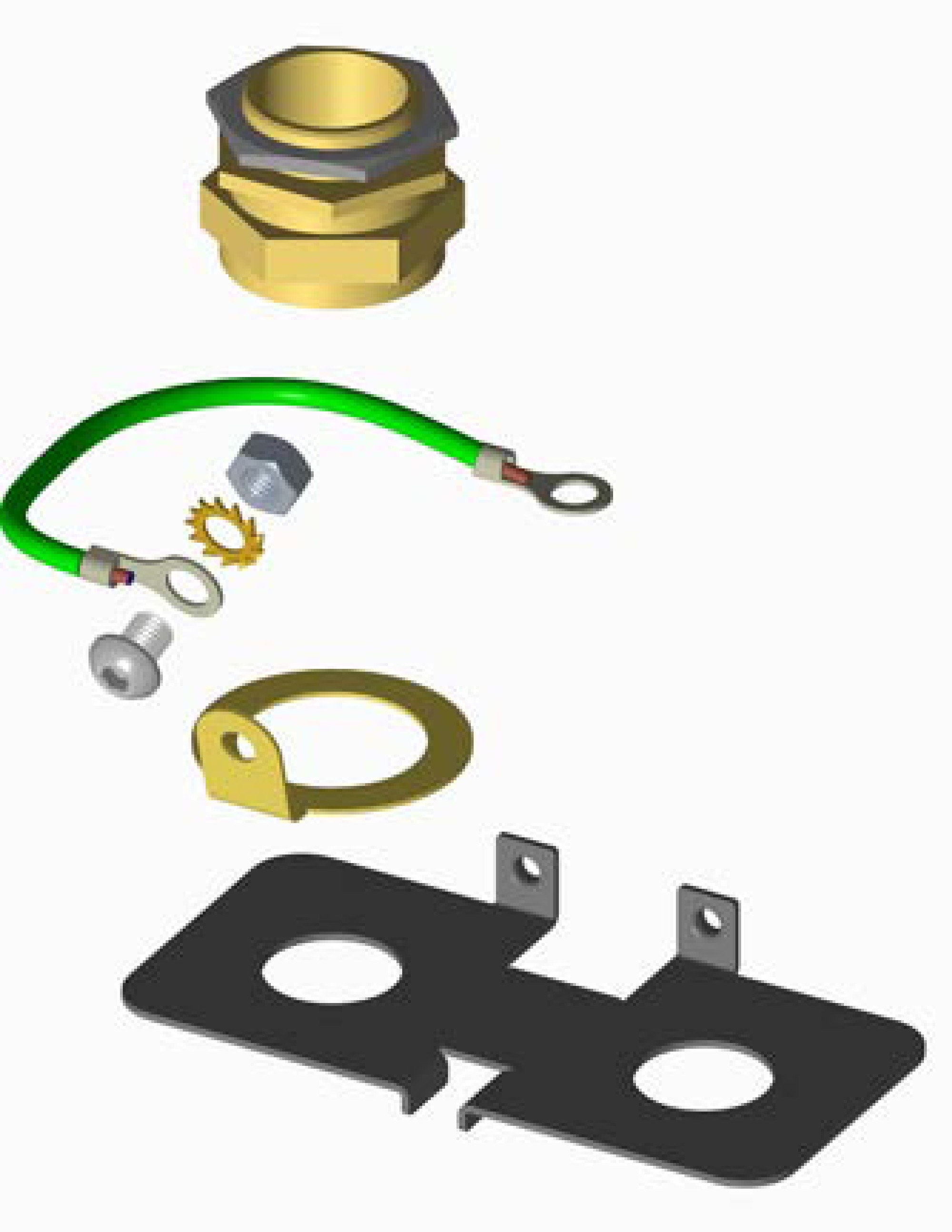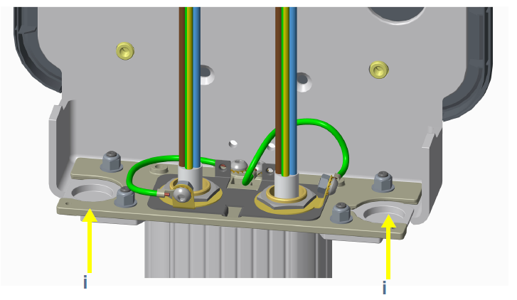 UK installers only: Use the grounding cable, M8 button head screws, and toothed washers included in the Grounding Kit box to connect the cable gland to any available hole in the head bracket.