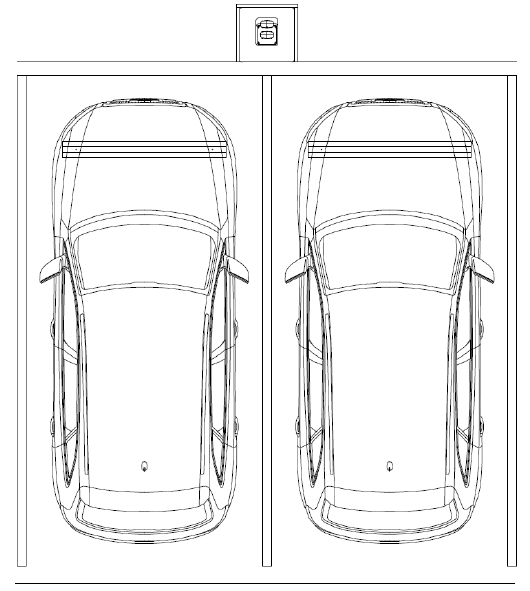 Place the station in front of the curb between spaces with wheel stops 900 mm from the front of each stall. The base of the charging station can be flush with the parking spaces or at curb level.