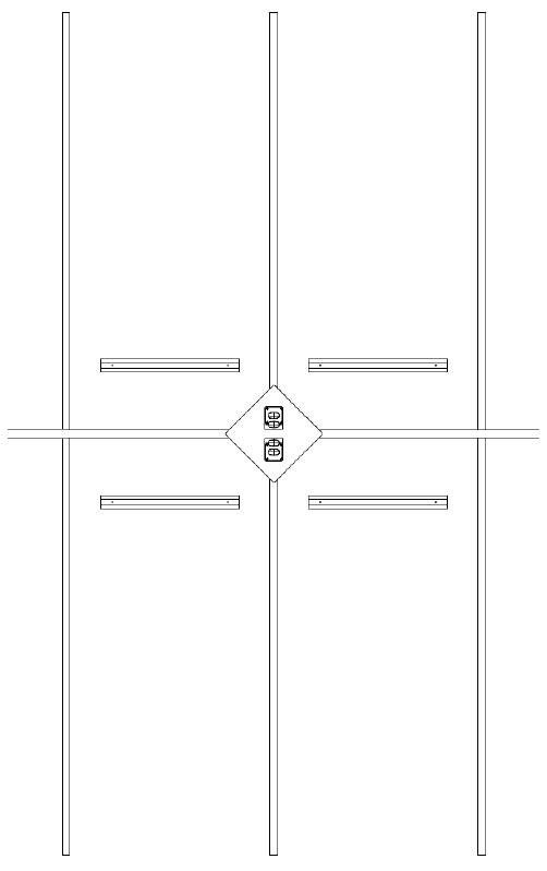 Two stations back to back, centered between four spaces 900 mm on each side.