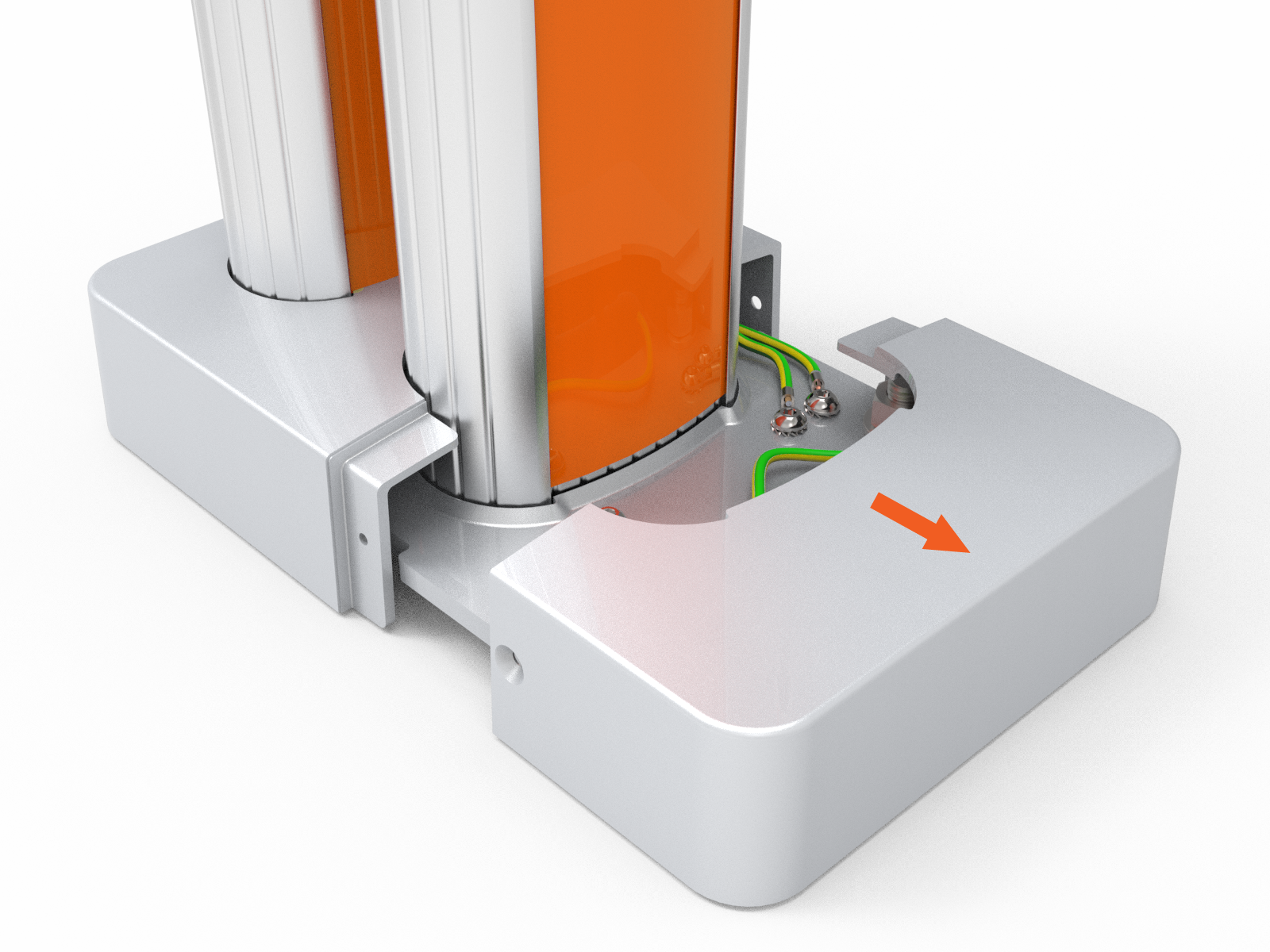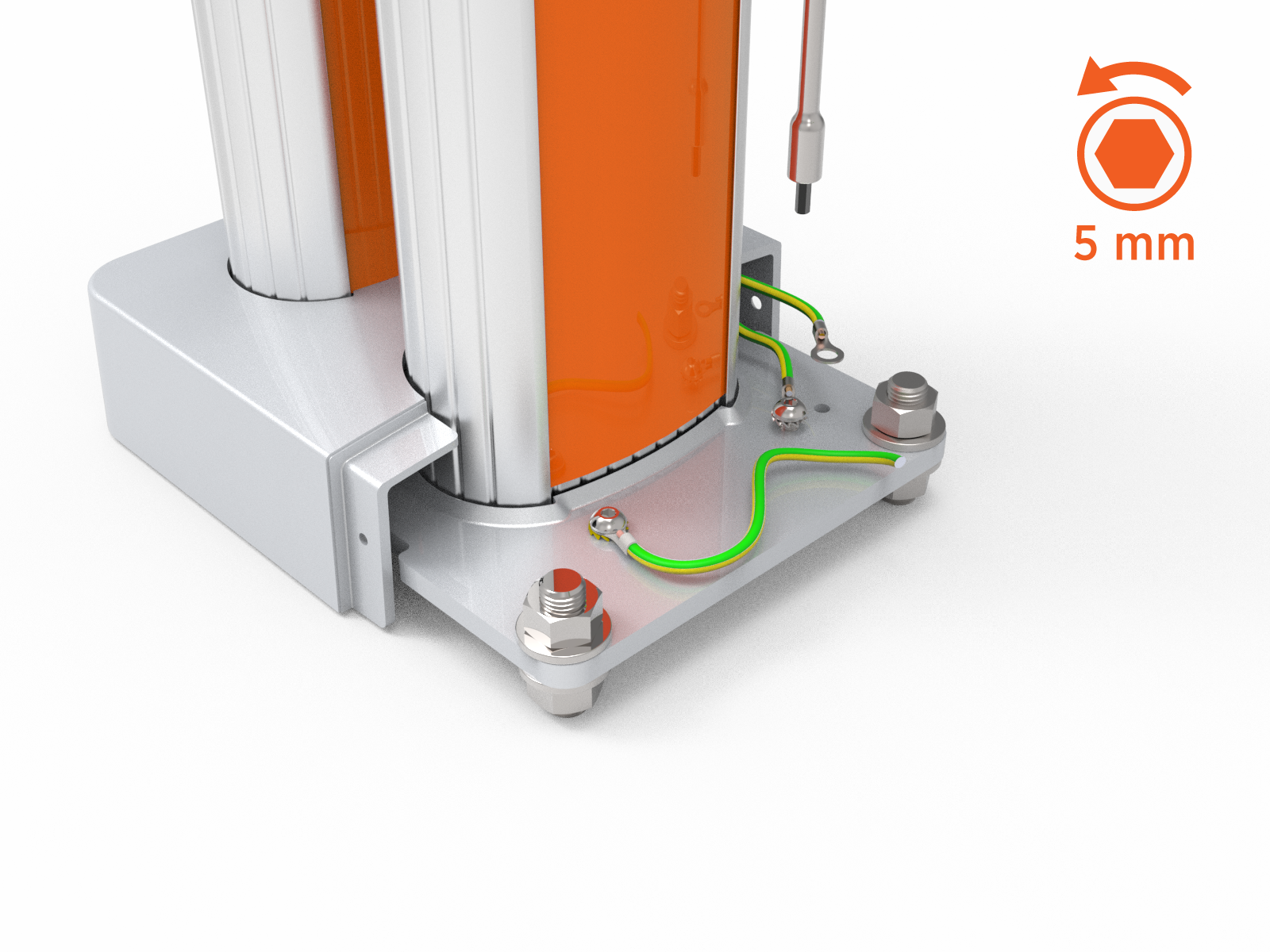 Using a screwdriver with a 5 mm hex driver, remove the screw securing the grounding cables to the pedestal base plate.