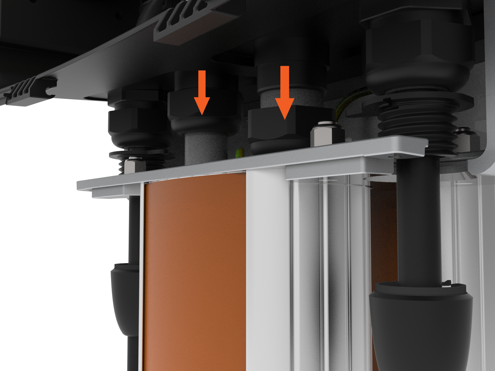 Locate the strain relief connectors and loosen them from the cable glands next to the station mounting bracket.