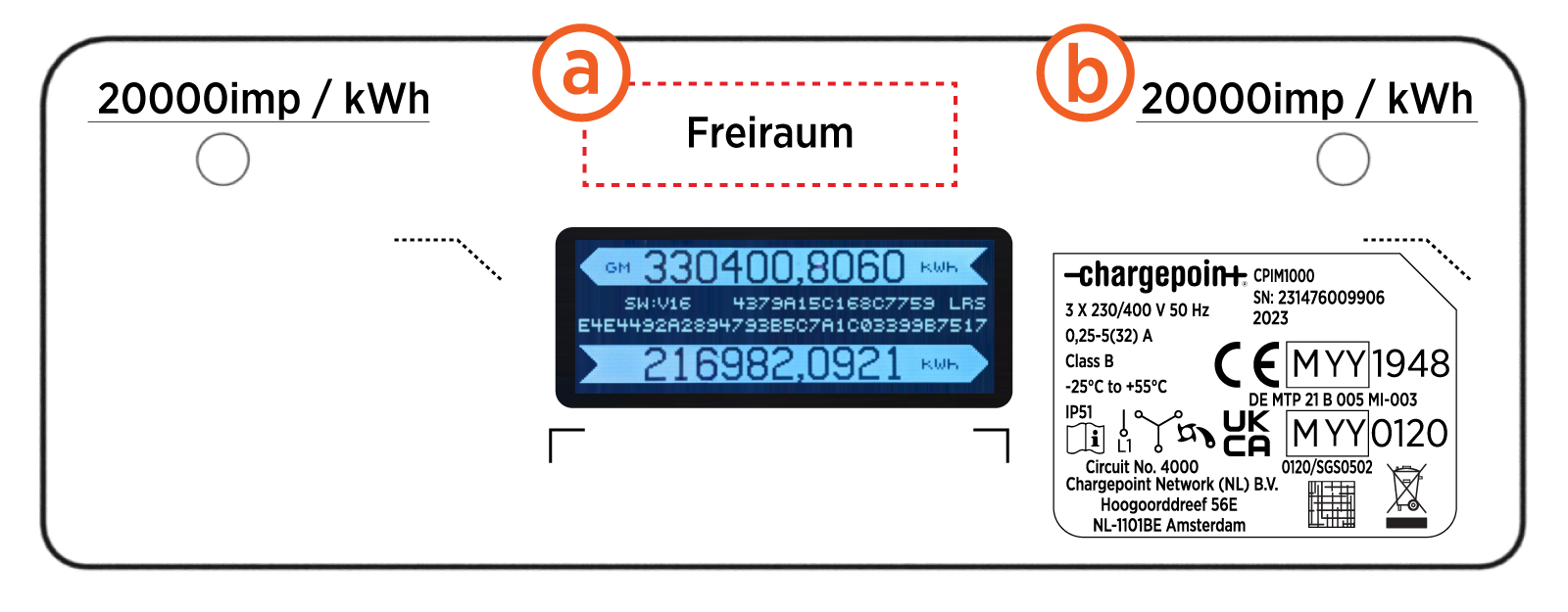 Right side impulse LED (20000 imp/ kWh)