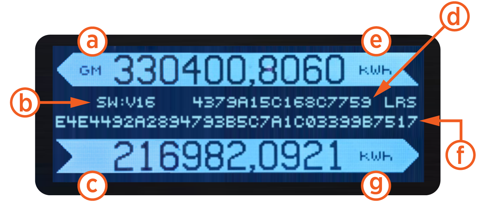 The LCD displays six digits before and four digits after the comma or decimal. The unit measure is kWh.