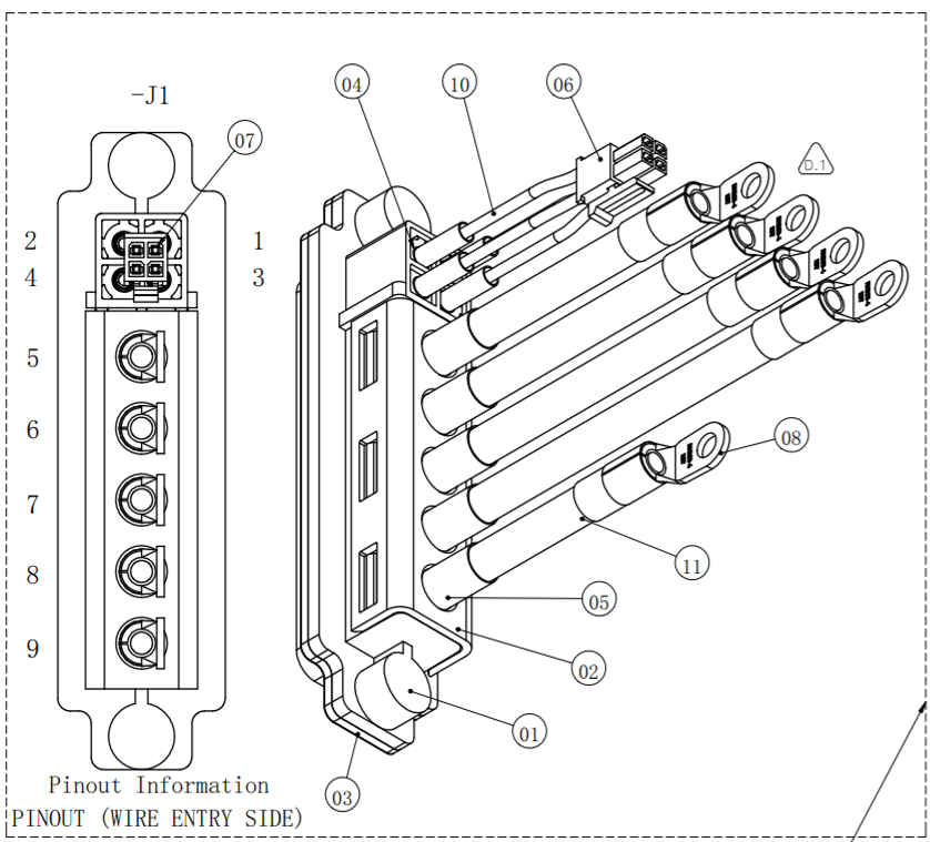 Left side output main connector