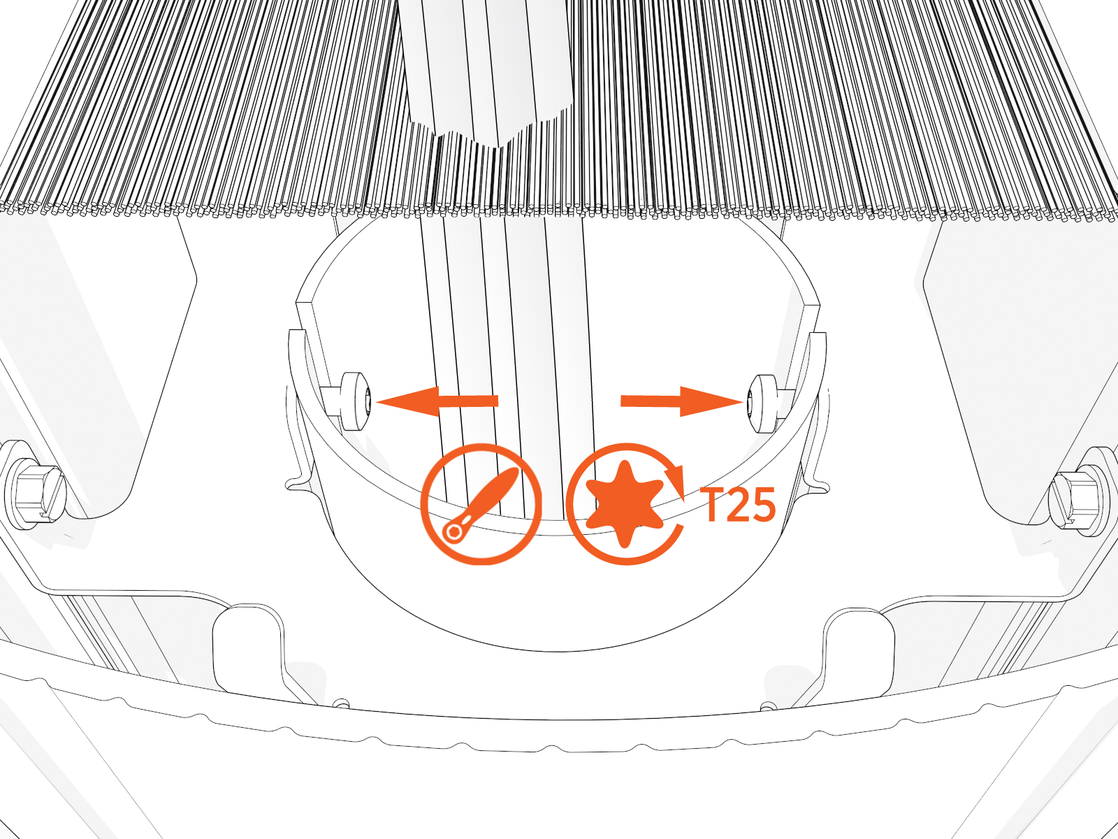 Use the L-wrench or mini-rachet wrench to torque screws to 4.6 Nm (40 in-lb).
