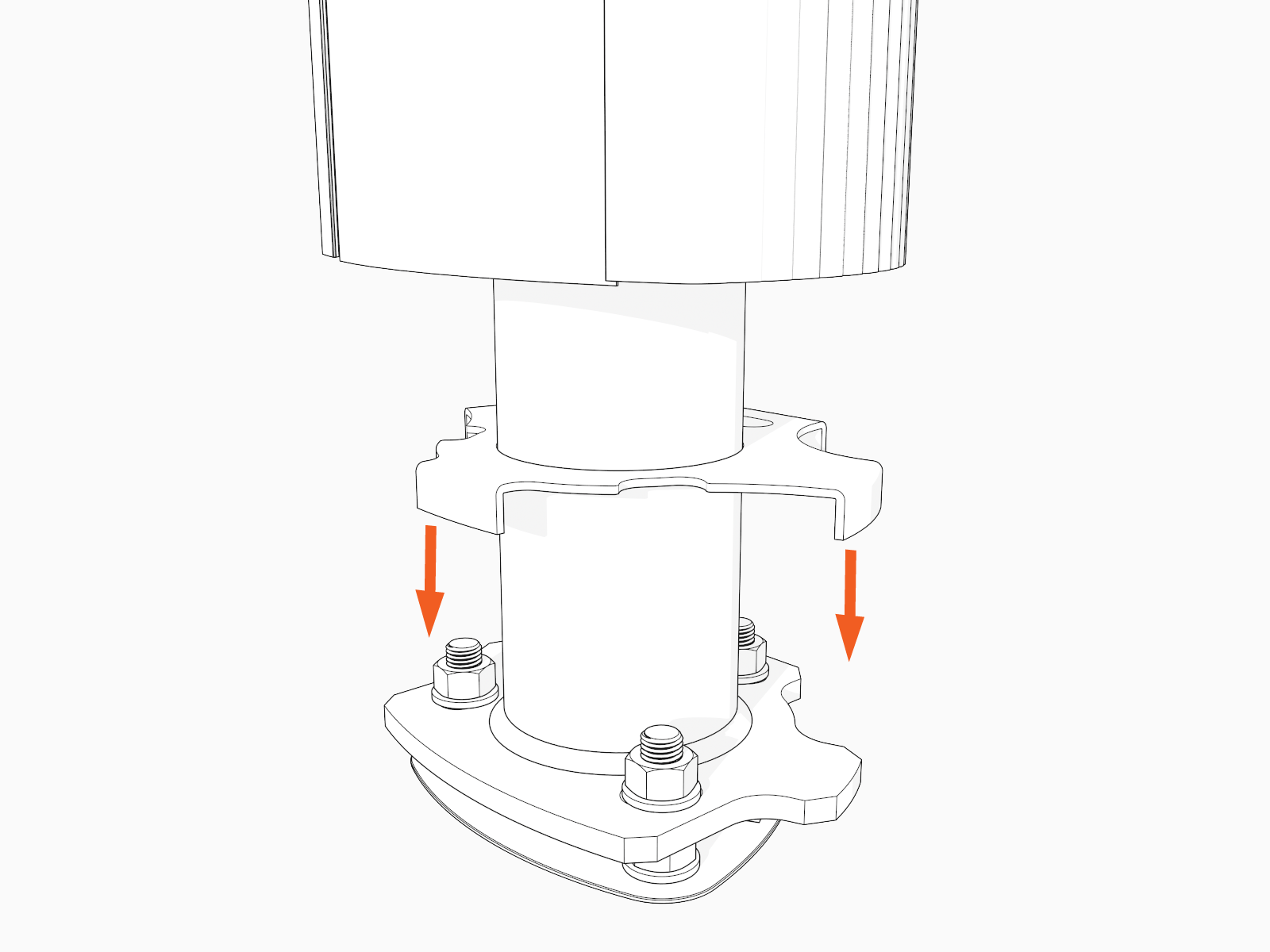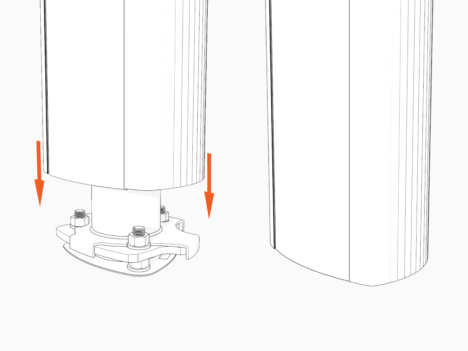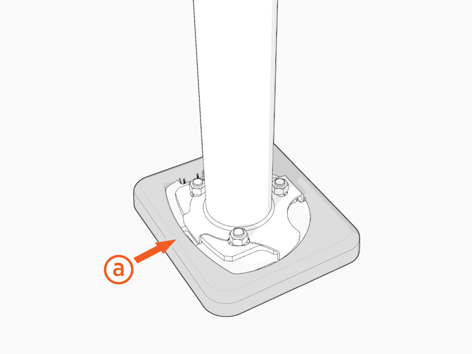 Do not seal the pedestal to the concrete pad with caulking, silicone, or other sealing material. The pedestal is designed to shed moisture between its bottom surface and the concrete pad. Sealing the pedestal to the concrete can trap water inside the housing. -