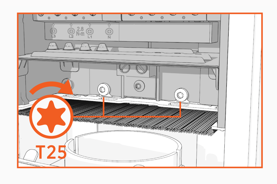 Using a T25 torque driver, torque the screws to 5.7 Nm (50 in-lb) to secure the power plate.