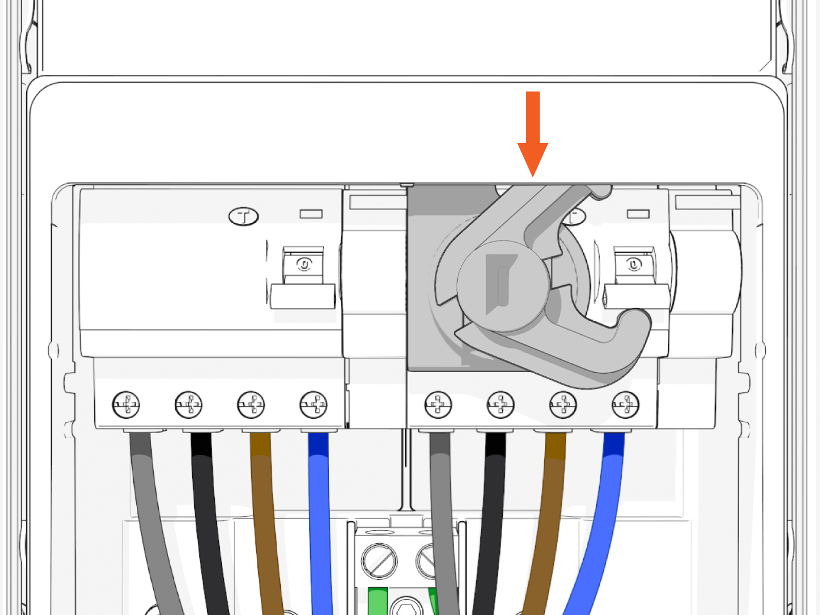 Residual Current Circuit Breaker terminal block.
