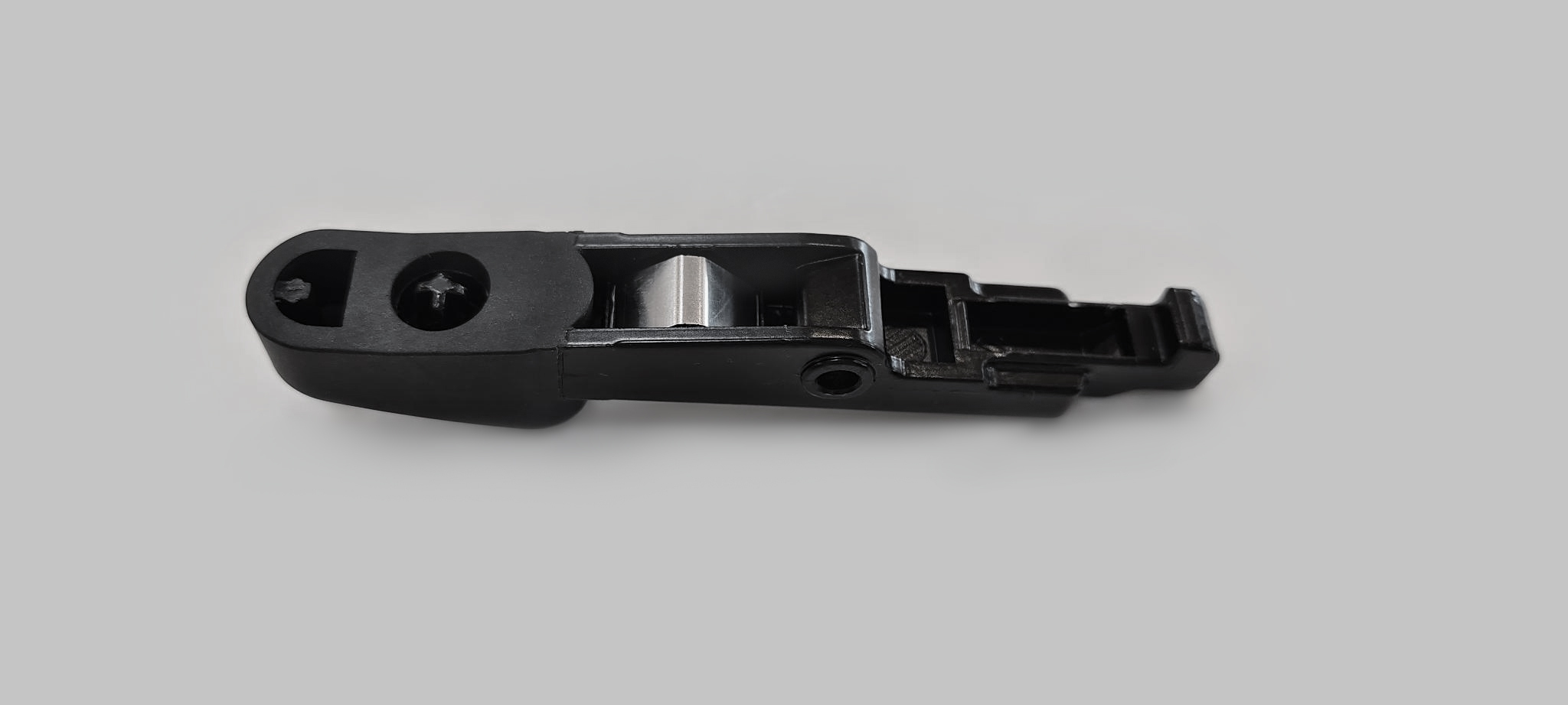 Replacement latch stays wide at the tip and uses a shorter dark-colored spring