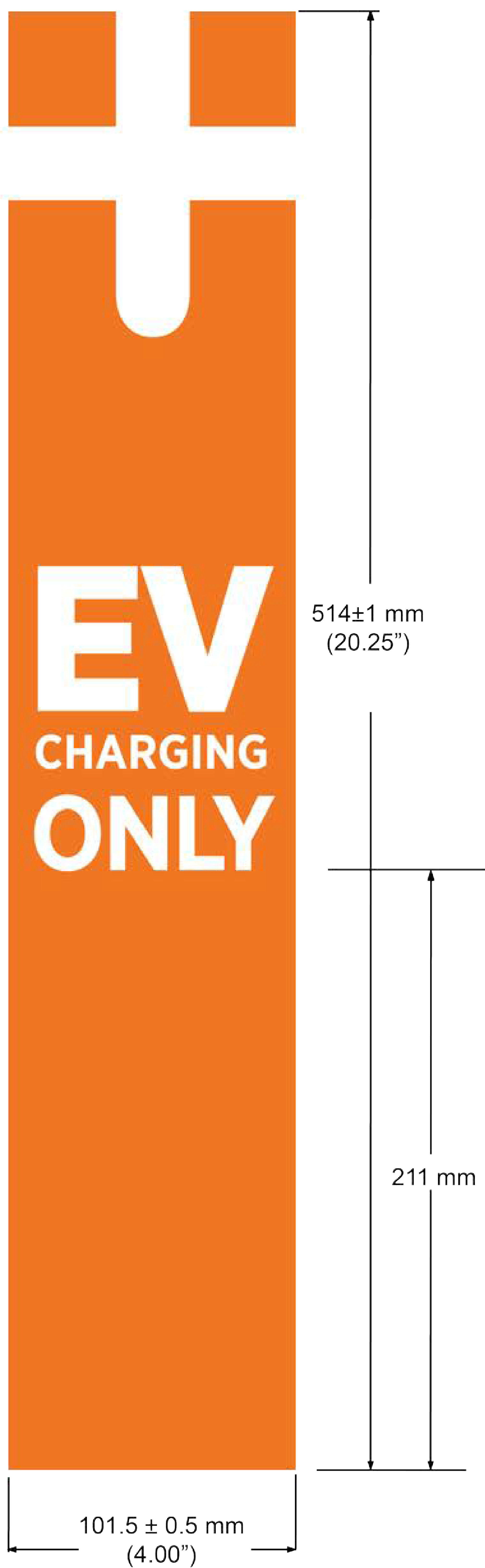 Follow these steps to install signs on the charging station. To ensure a proper fit, signs must follow the specification provided by ChargePoint. An example of the sign specification (not to scale) is provided below. Detailed sign specifications for existing, optional, and custom signs are available at: ChargePoint Product Reference Documentation.