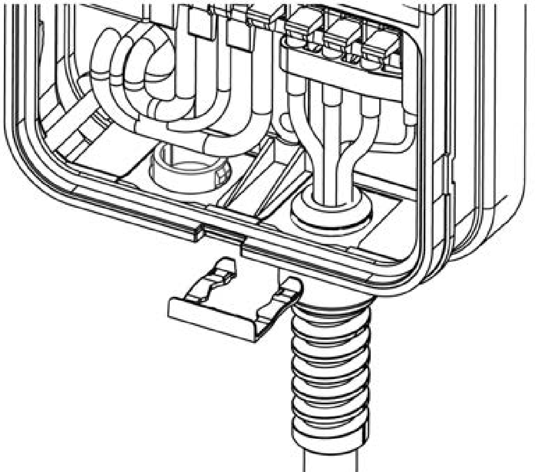 Push the cable upward and slide the cable clip into the slot on the strain relief until it snaps into place.