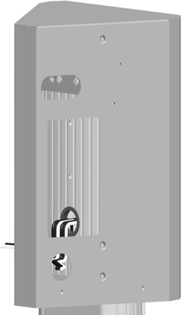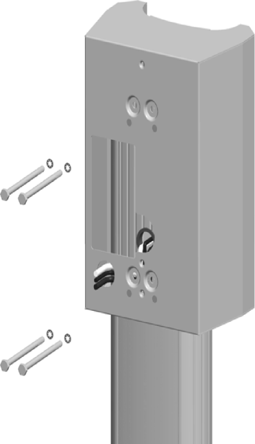 Fasten the main bracket to the pedestal using two 10-32 x 102 mm (4 in) screws and lock washers at the top and two 10-32 x 102 mm (4 in) screws and spacers at the bottom.