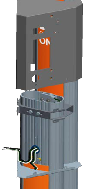 Slide the main bracket over the pedestal, aligning the holes in the main bracket with the corresponding holes in the top internal brace.