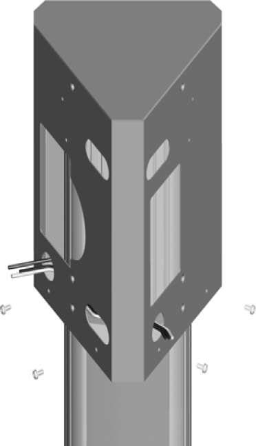 Fasten the main bracket to the pedestal by installing four 8-32 x 9 mm (3/8 in) screws into the internal bracket.