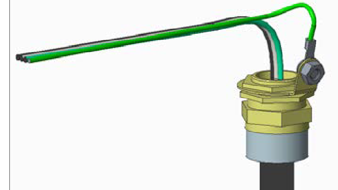 Use a 5 mm (3/16 in) driver to connect the ground wire to the gland with a M8 x 8mm x 1.25 button head cap screw, M8 external tooth washer, and M8 nut.