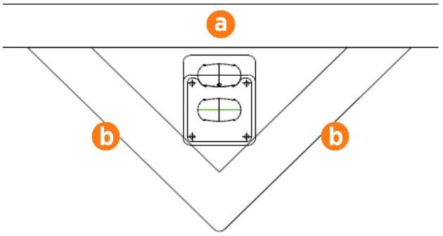 Place a single port station for a single parallel parking space 6 m long. Place the station (a) 450 mm from the kerb, and 1.8 m from the front of the parking space (b).