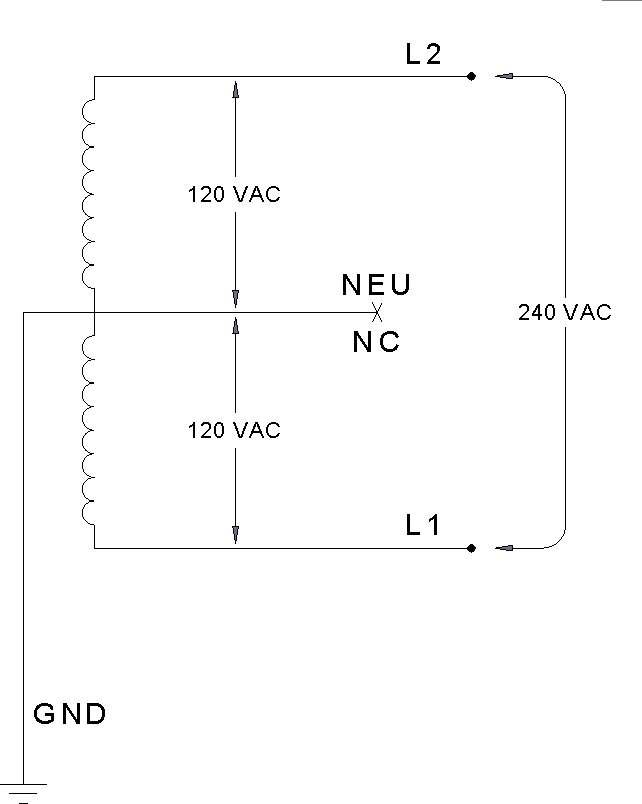 120/240 VAC, 10 Bonded Neutral Station is connected to L1 and L2 Neutral is not used