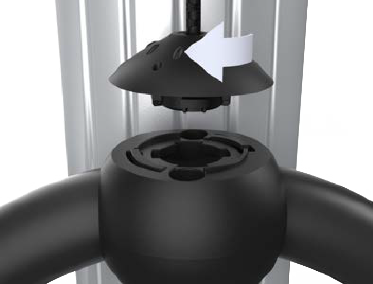 Turn the knot bearing ball clockwise approximately one-quarter turn. Push down gently while turning the knot bearing ball.