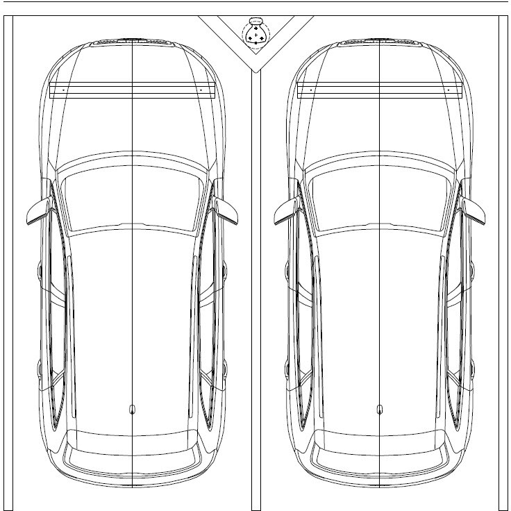 Place a dual holster station centered between two parallel parking spaces, each 6 m (20 ft) long. Place the station (a) 450 mm (18 in) from the curb. A 7 m (23 ft) charging cable is recommended.