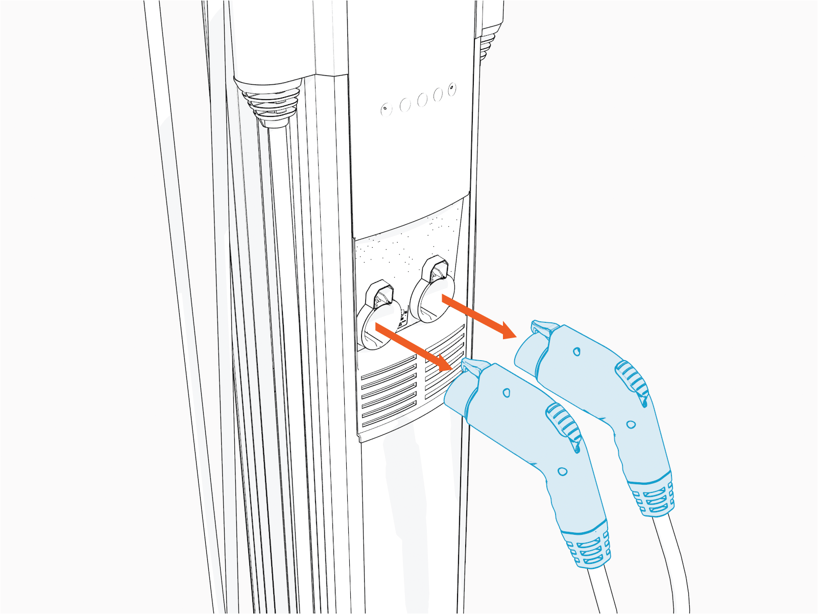Use your ChargePoint card or the mobile app to start a charging session, then remove the charging plug(s) from the holster(s).