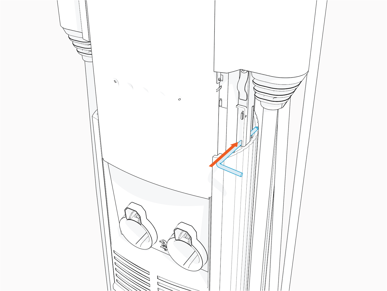 Remove the L-wrench and slide the head assembly into the station body. Ensure the head assembly is fully seated. It may require some downward force to ensure it is fully seated.