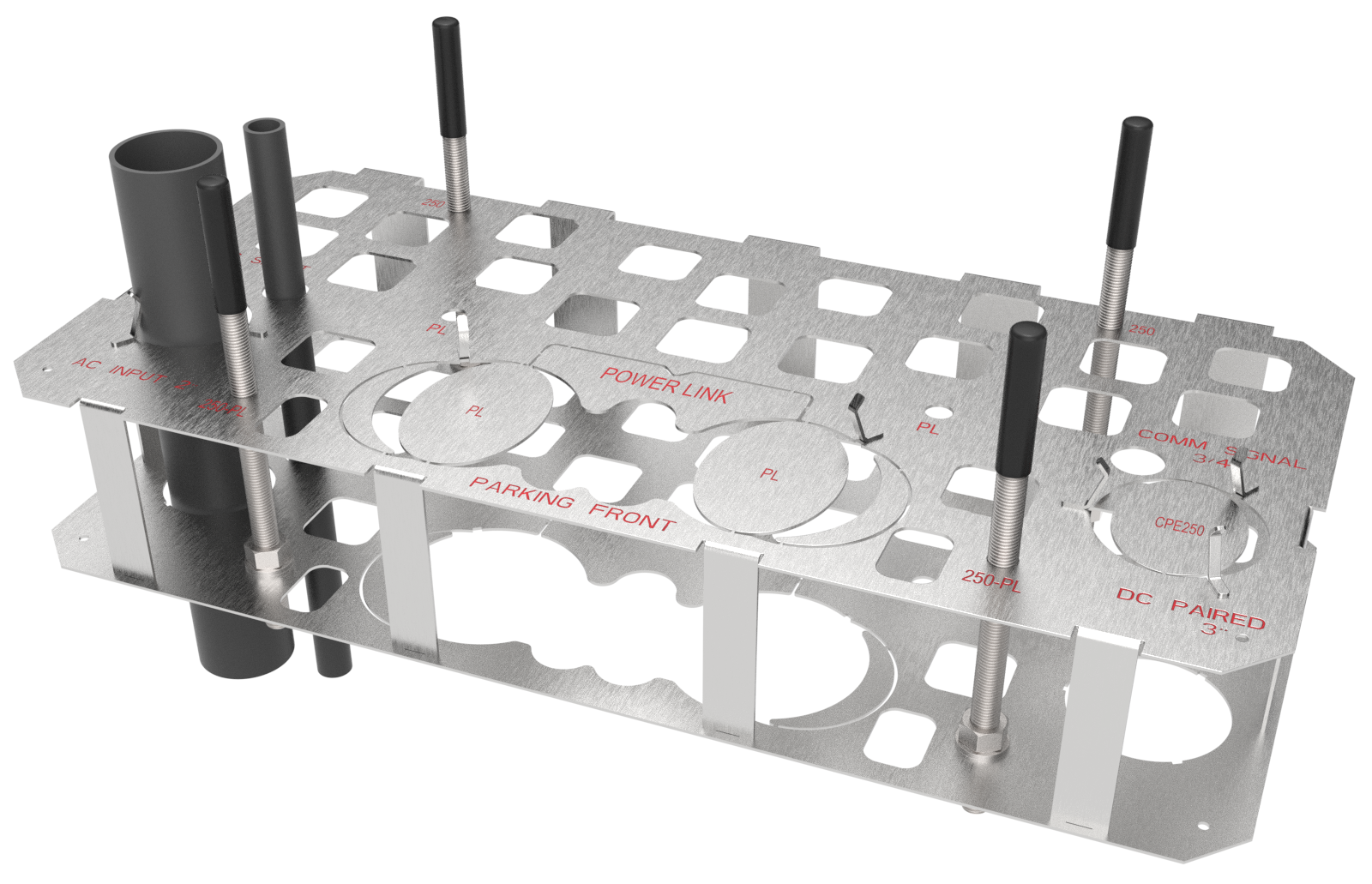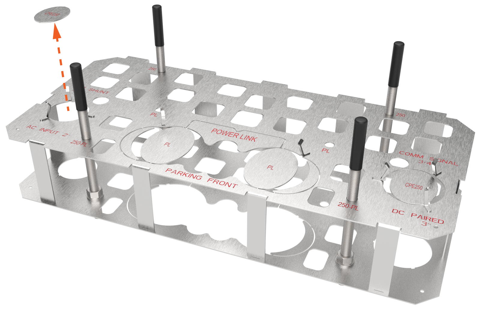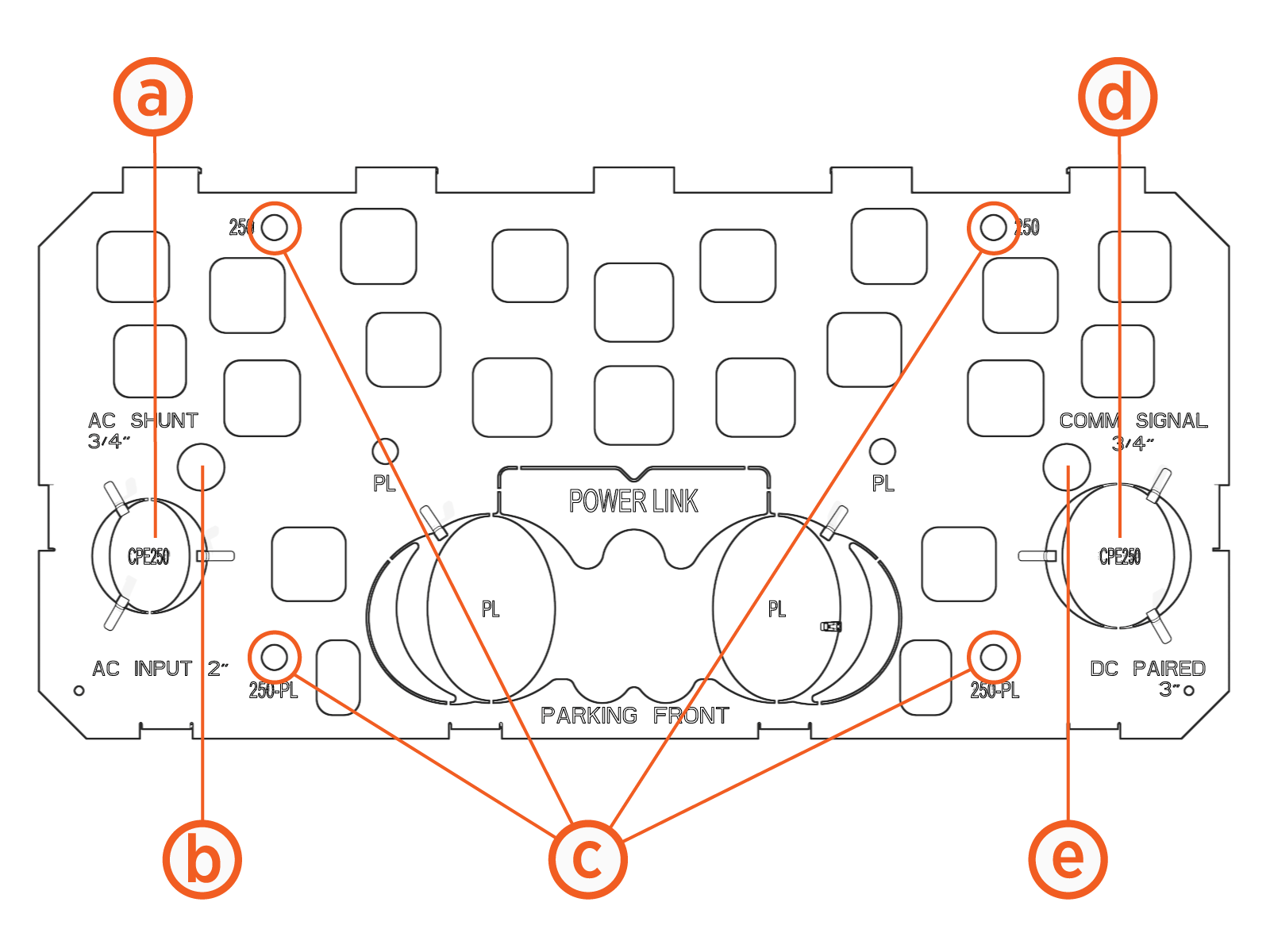 Each Express 280 station requires AC power from the site’s electrical panel. That AC conduit includes a ground conductor. Optional shunt trip wiring can run from the station to the breaker panel. Check the site drawings for this.