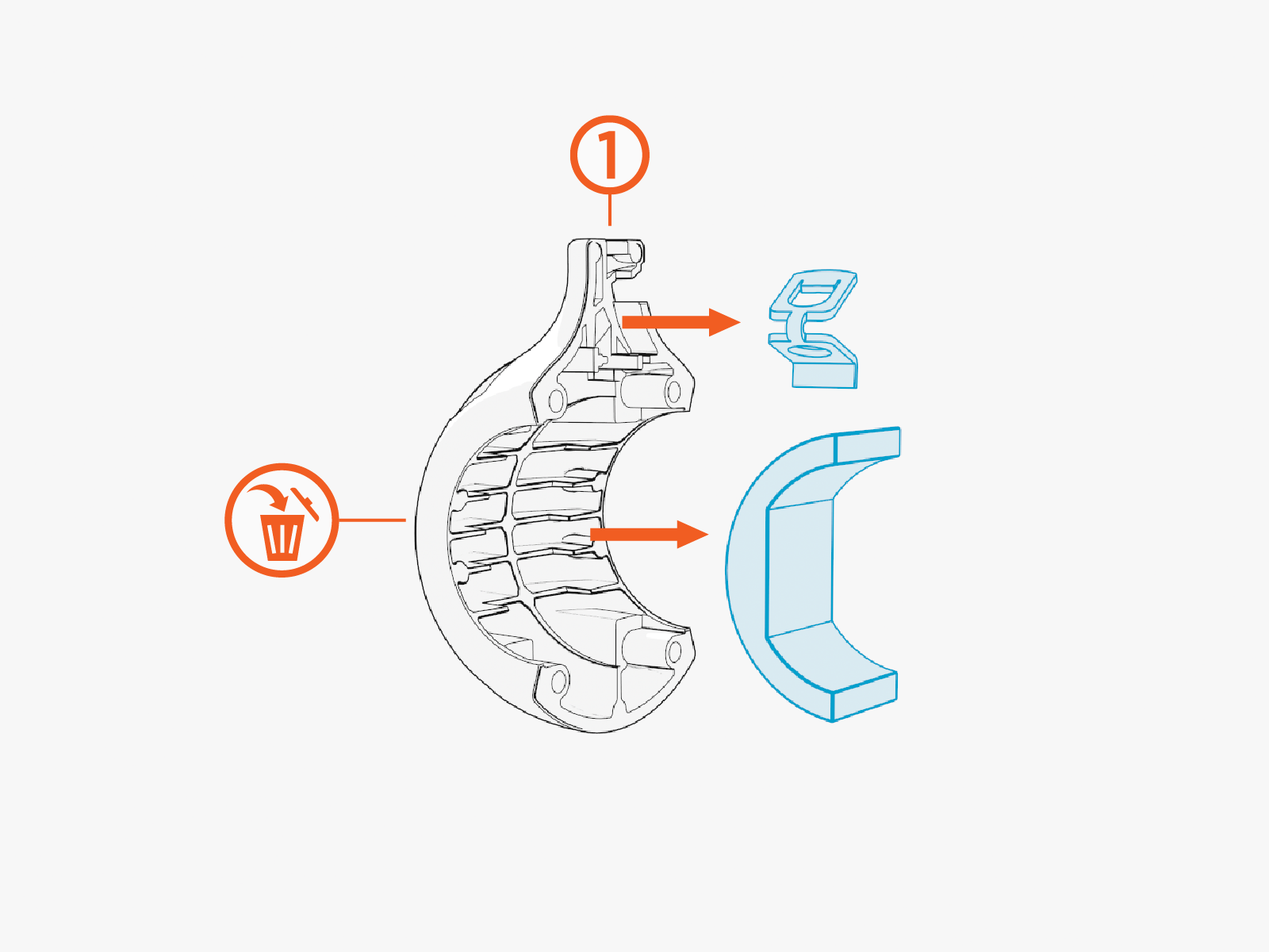 Remove and set aside the spring clip and compression pad (if present) from Tetherball Half 1. Discard Tetherball Half 1.