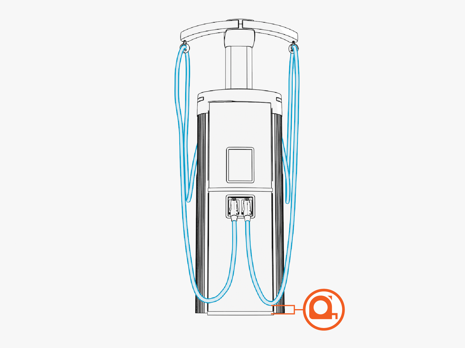 Cable Management Kit attaches to the back of a charging station. Its function is to hold charging cables off the ground.