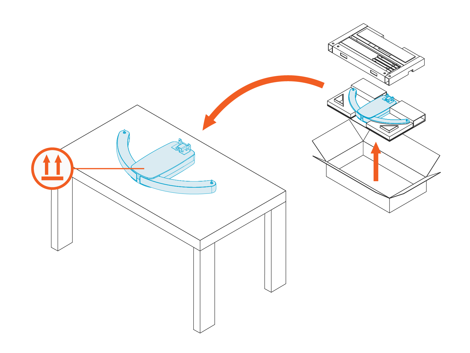 Cable Management Kit shipping box and set it on a work table or on top of the closed shipping box. All upgrade work will take place with the swing arm laid upside down on the table.Be mindful not to damage cosmetic parts when unpacking box contents.
