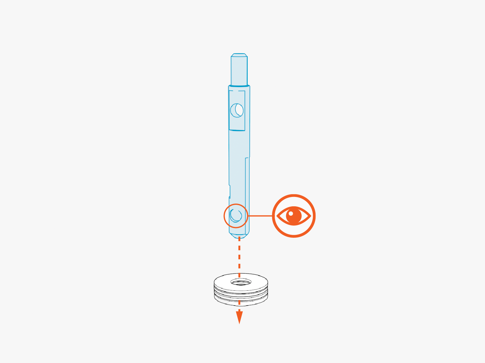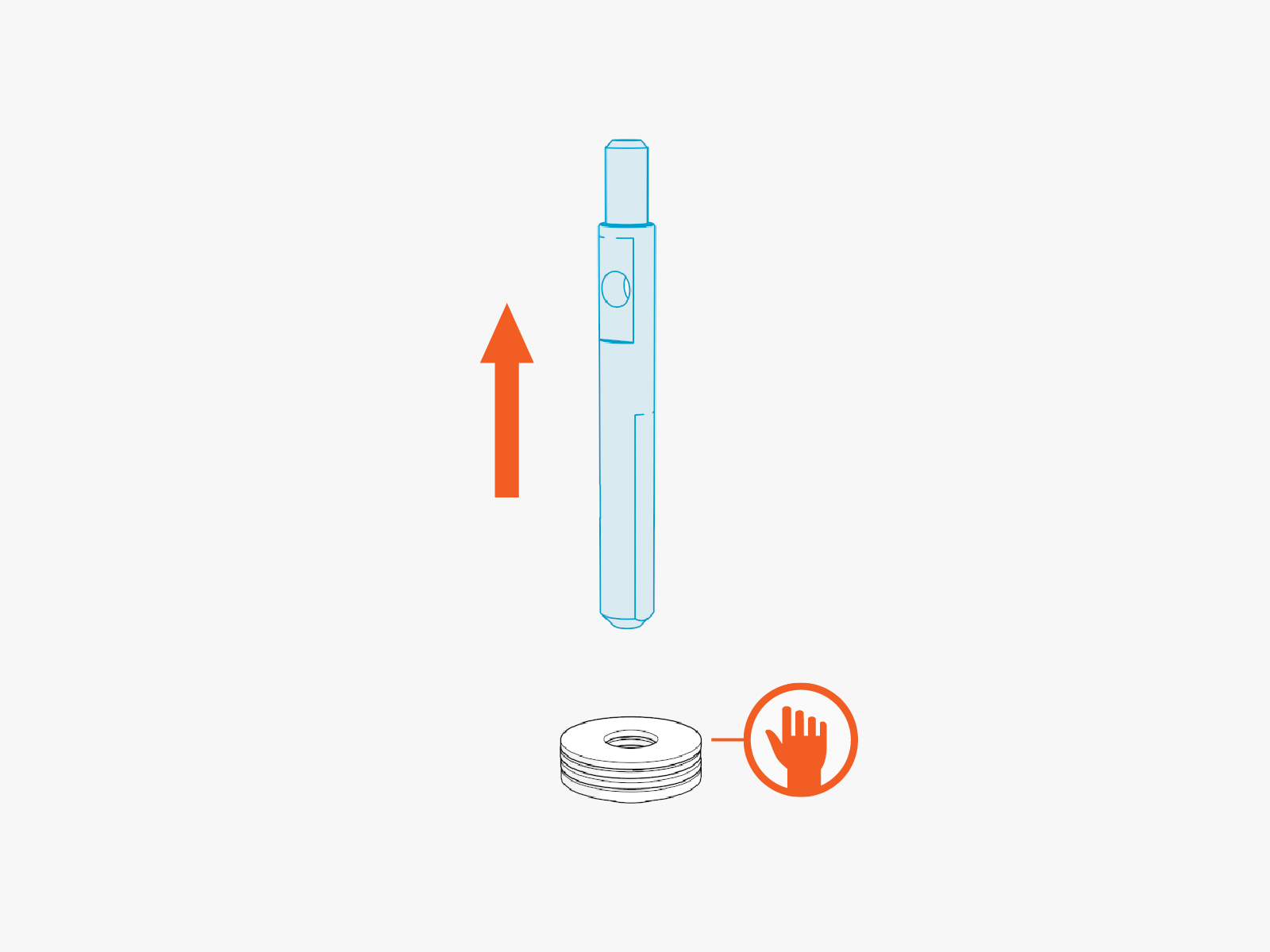 Still holding on to the washer stack, slide in the upgrade tether shaft.