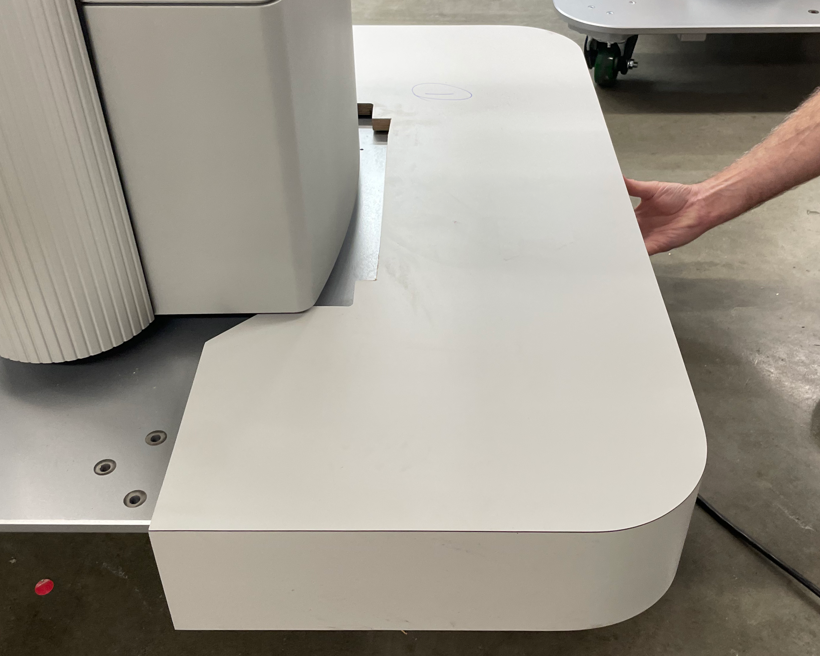 Install the dolly covers over the dolly by sliding them under the station cover panels. The two halves are held together with magnets.