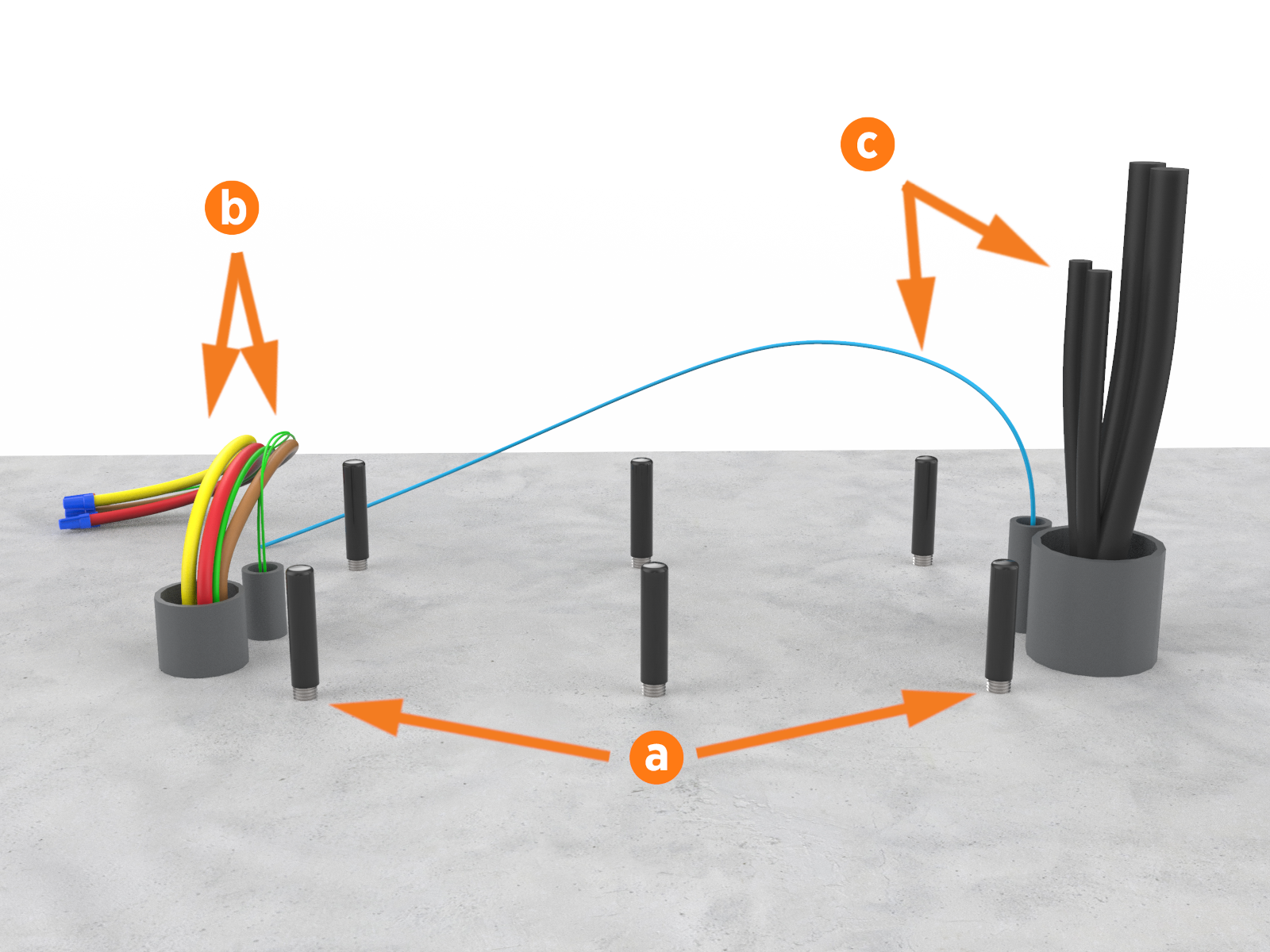 Leave 61 cm (2 ft) of each conductor above grade at each end