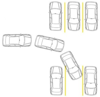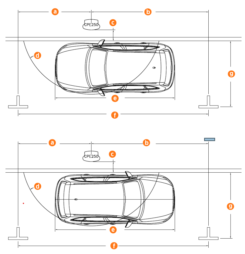 Pull-through parking (gas station model) is not recommended. If pull-through parking is used, ChargePoint recommends placing at least one charging station on each side of the island. This avoids situations where the charging station is on the opposite side of the vehicle from the charge port. Guidance for station placement in island or curbside parking is shown below.