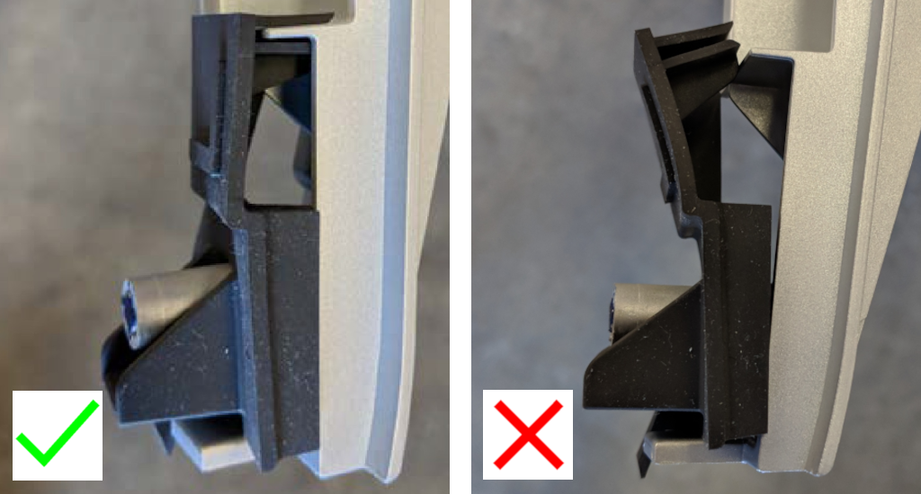 Ensure the gasket on each end of the new area light bar is properly seated around the plastic tab.