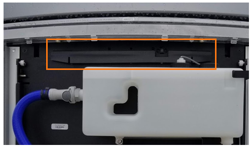 Remove the small pressure sensor tube (a) from the front of the heat exchanger by hand. Route the tube down through the grommet in the frame shelf. The tube remains attached to the controller.