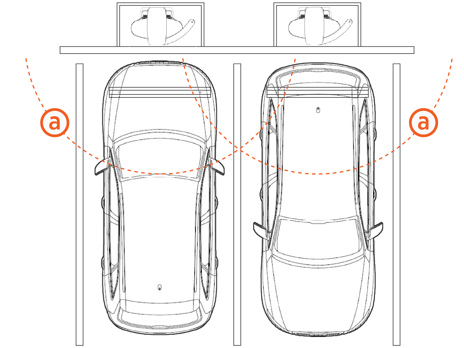 Center single stations with dual CCS1 cables between two parking spaces so that the cable runs down either side of the parking space.