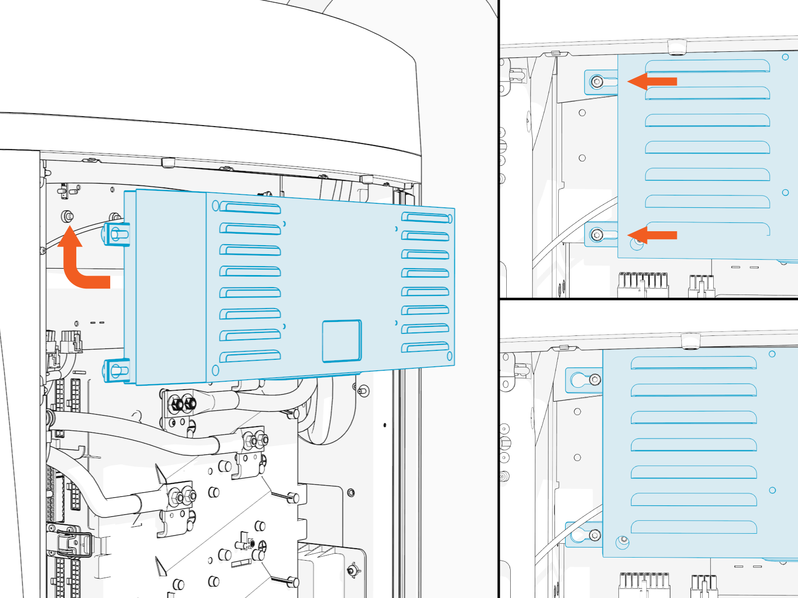 Align the keyholes on the new auxiliary power supply with the screws on the station and slide it into position.