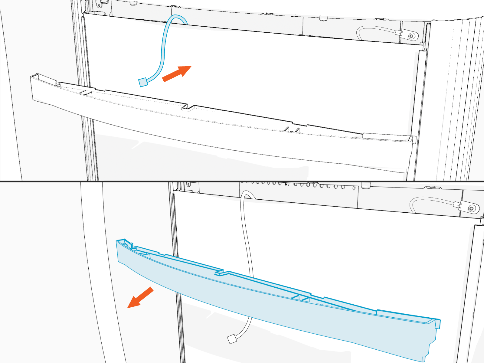 While holding the area light bar near the opening at the top of the Express 280, disconnect the 4-pin power cable from the area light bar.