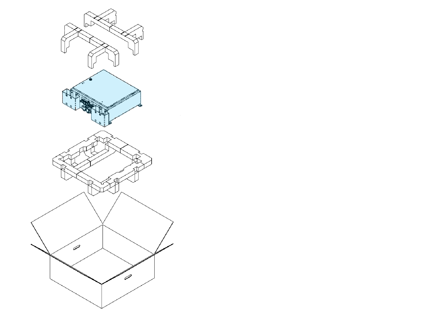 Leave components in the shipping crate until needed. When removing, protect them from damage (such as scratches) by placing them flat on a blanket or tarp, face up. Do not stand up cover panels, as they may be knocked or blown over. Cover charging connectors to prevent damage or ingress.
