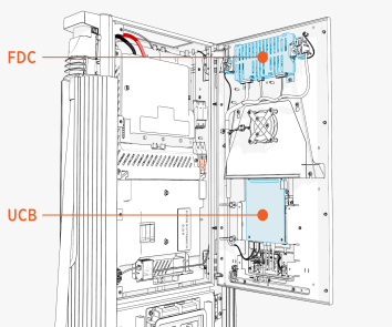 The illustrations below show the Power Link Control and Communication Module (UCB