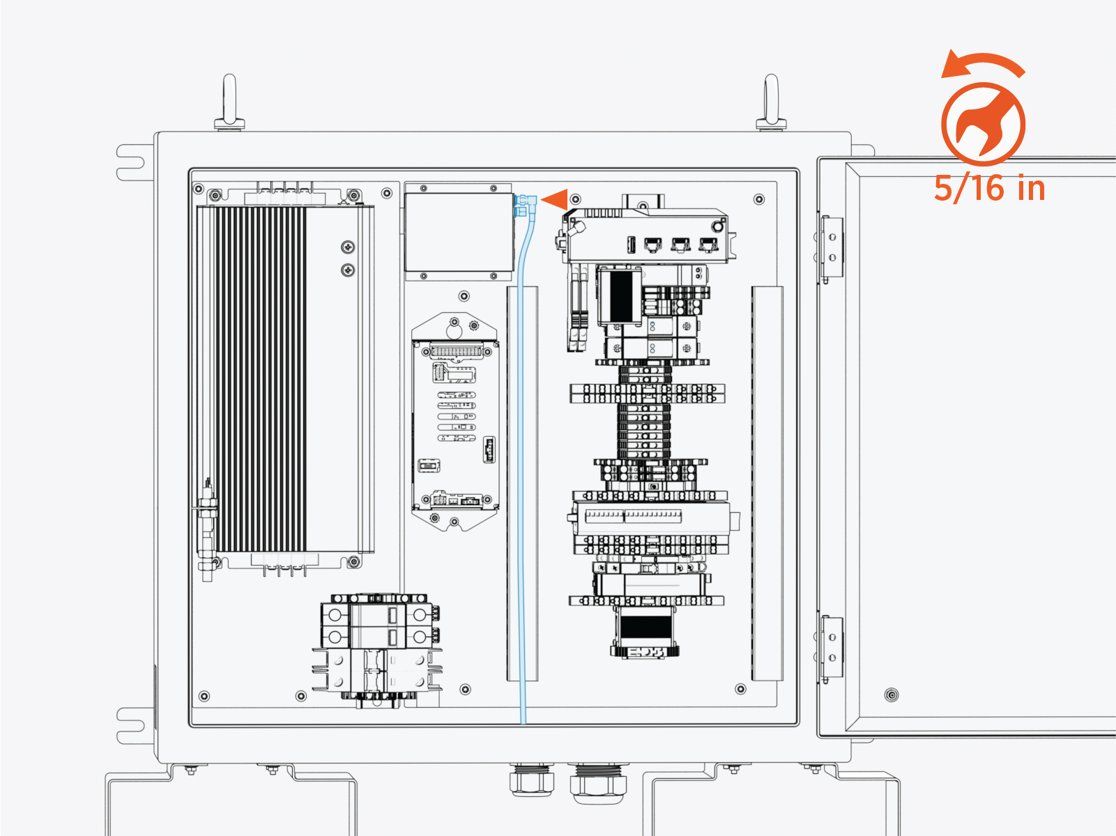 Torque coax connections from the cable to the right-angle adapter and from the right-angle adapter to the RFID