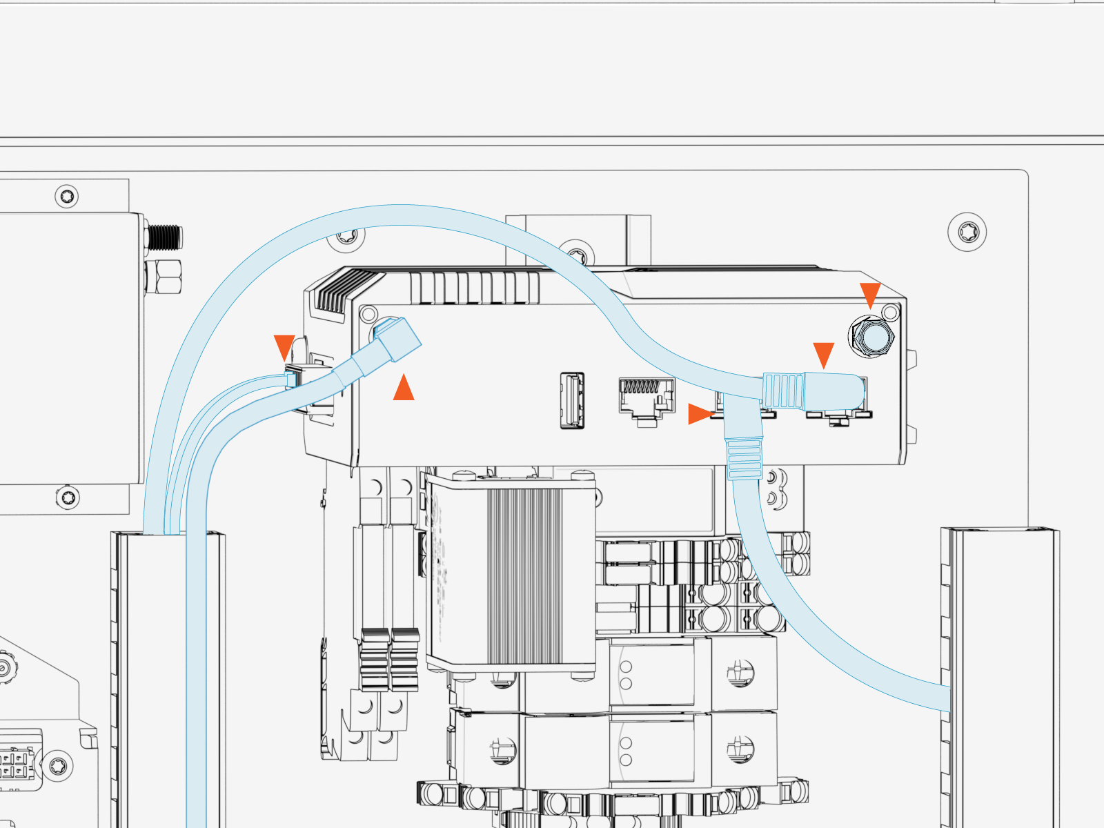 Disconnect the two power wires and the two Ethernet cables.