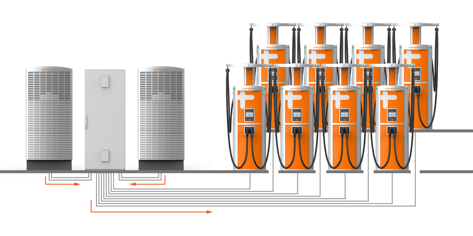 Power Hub: Distribution cabinet that enables one or more Power Blocks to distribute charging power to more Power Link 1000s than a single Power Block could support by itself.