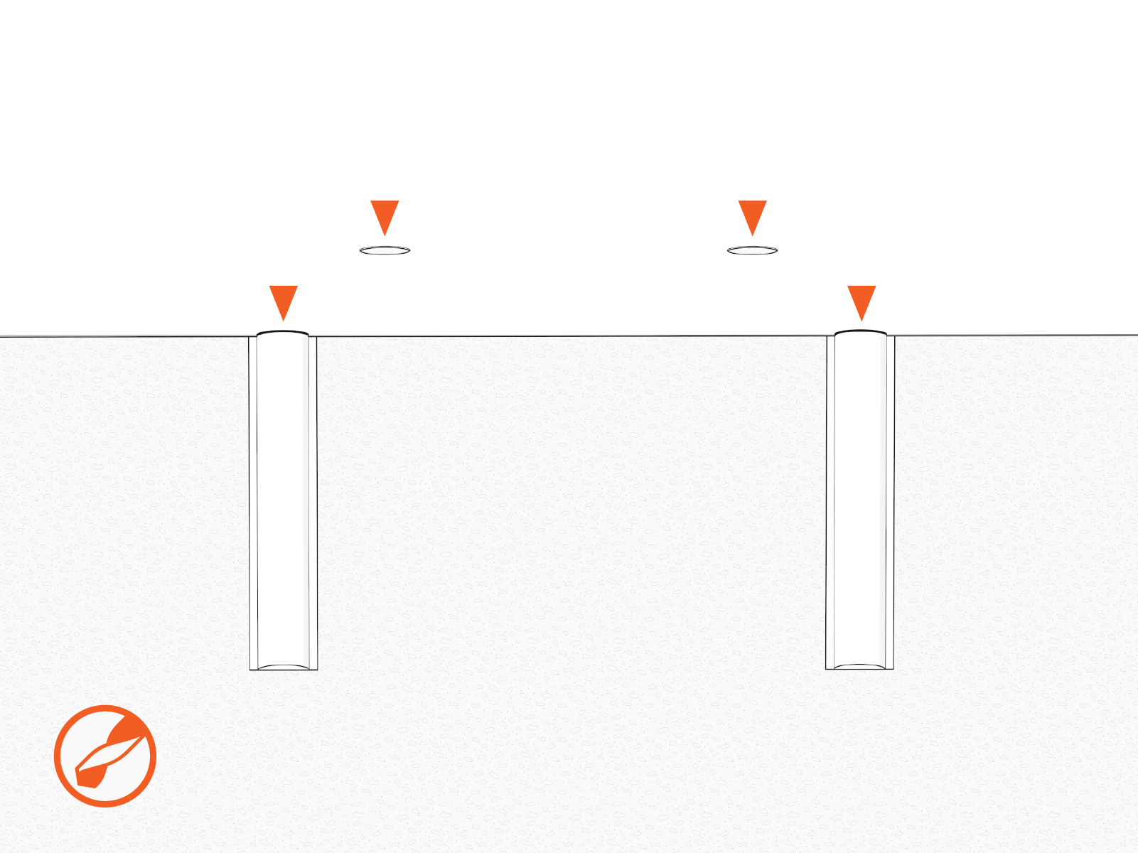 Drill four 19 mm (3/4 in) diameter holes to a minimum depth of 102 mm (4 in) at the marked locations.