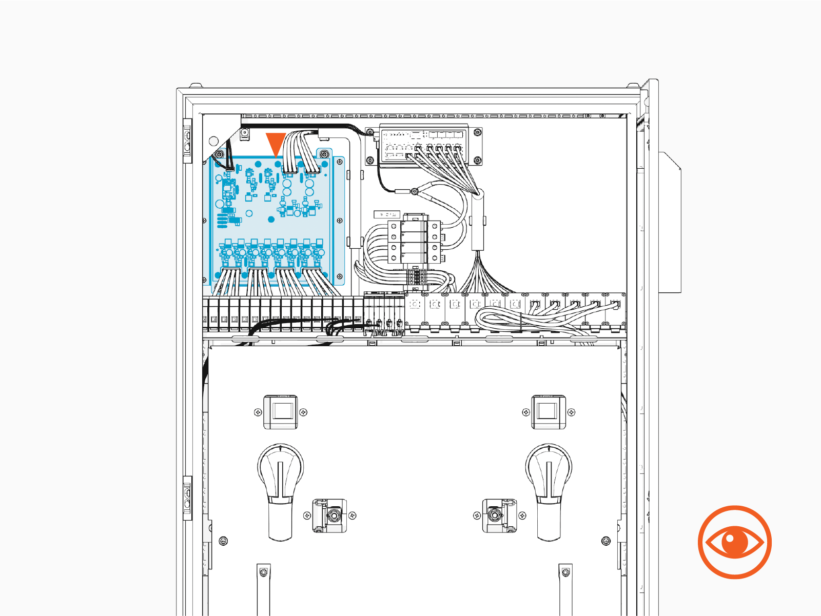 Locate the controller board within the low voltage cabinet.